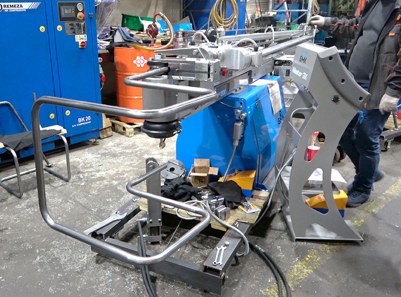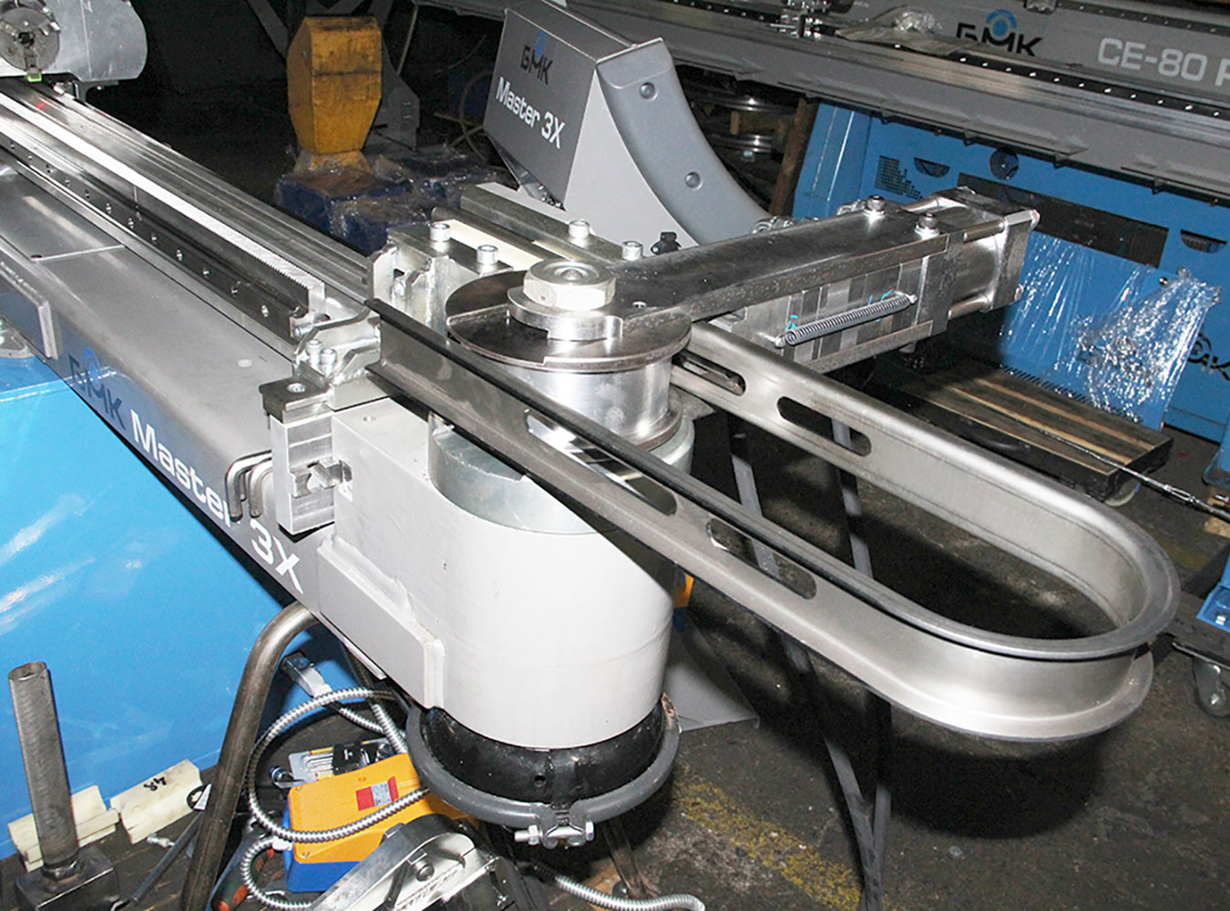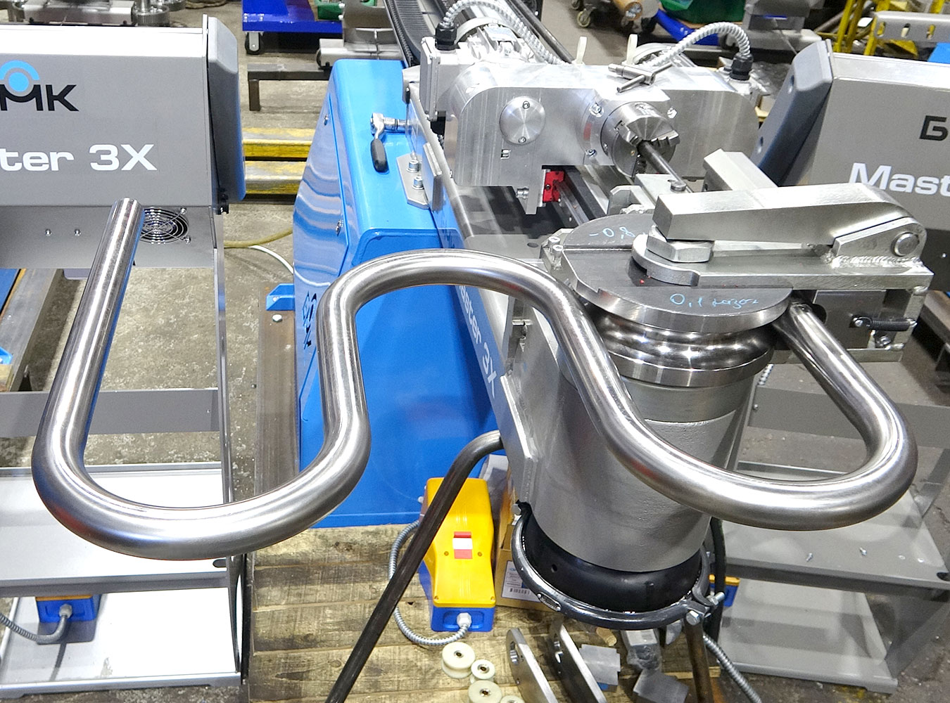- Вынесенный вперед на 860 мм гибочный модуль высотой 400 мм позволяет изготавливать детали (тачки, стулья и т.д.) с нахождением изогнутой части детали под вынесенным вперед гибочным модулем.