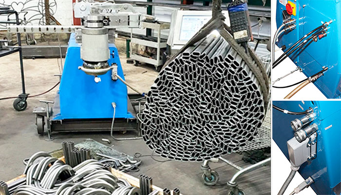 - Гибка профильных труб на специализированной оснастке без внутреннего подглубления с сохранением формы сечения трубы в месте гиба.