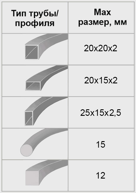Диаметры изгибаемых труб: от 3 до 30 мм