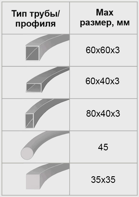 Диаметры изгибаемых труб: от 3 до 80 мм