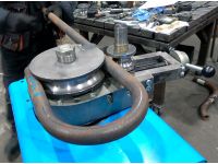 - Удобный винтовой поджим обкаточного ролика со сьемным штурвалом позволяет быстро и без особых усилий зажать трубу между гибочным и обкаточным роликом для выполнения гиба.