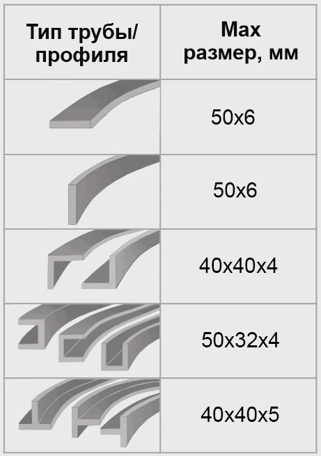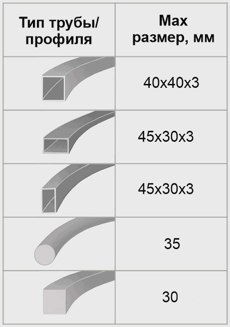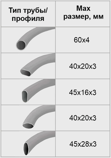 Диаметры изгибаемых труб: от 3 до 60 мм