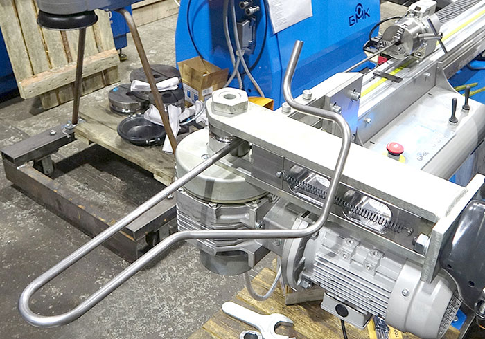 Поворот трубы в пространстве осуществляется за счет вращения штурвальчика редуктора каретки по градуировке лимба