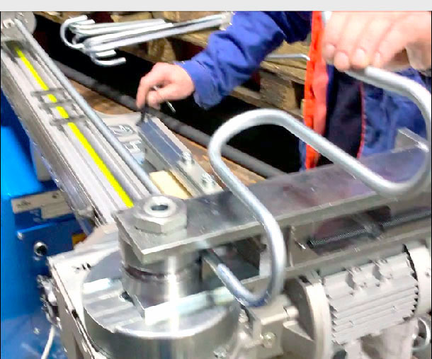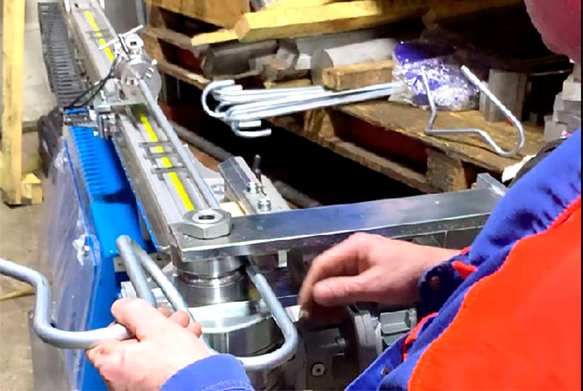 - Выдвигает трубу в точку начала очередного гиба (до установленного упора)